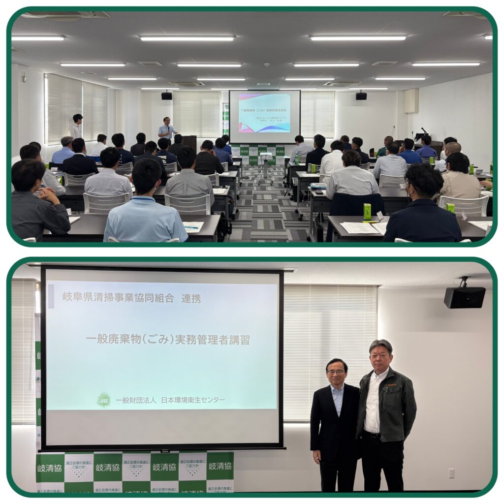 一般財団法人日本環境衛生センターが主催する、令和7年度一般廃棄物(ごみ)実務管理者講習を10月10日(金)、岐阜市須賀の岐阜県清掃会館2階研修室で開催し、岐阜県清掃事業協同組合の組合関係者21名、行政担当者(聴講者)20名の計41名が受講した。