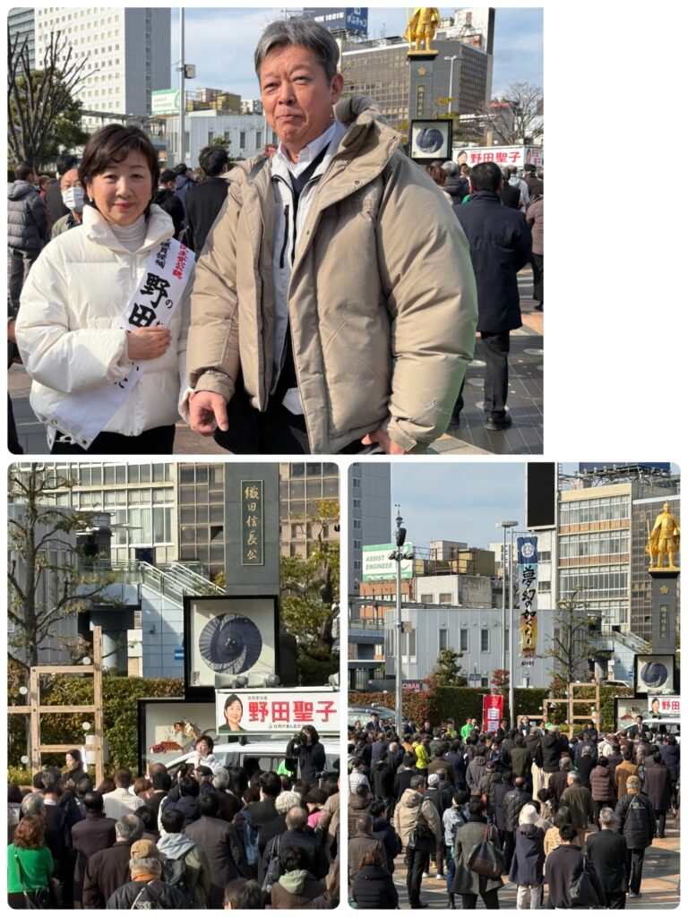 第51回衆議院議員総選挙「野田聖子候補者の総決起大会」に参加 2026 2/05 新着情報 岐阜1区 野田聖子候補者の総決起大会が2月5日14時から信長ゆめ広場にて行われました。決起大会には地域廃棄物適正処理推進議員連盟である渡辺猛之参議院議員なども応援に駆けつけておりました。 当組合より理事・監事・関係組合員等が参加しております。 新着情報